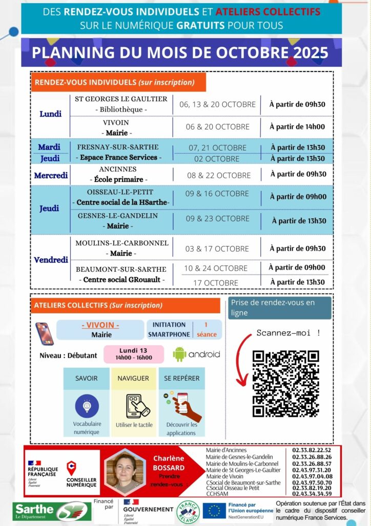 Comme chaque mois le département propose en octobre des accompagnements numériques gratuits pour tous les habitants.